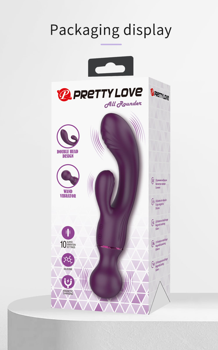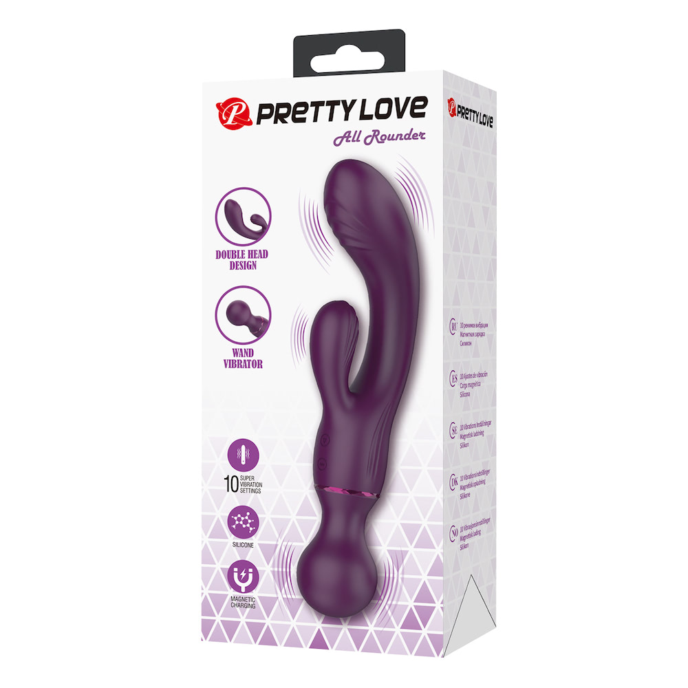 Vibrador com dupla estimulação com 10 modos de vibração - ALL ROUNDER.Este vibrador exclusivo em formato de coelho é feito de silicone premium, macio como manteiga na pele e totalmente à prova d'água para facilitar a limpeza ou simplesmente levar a diversão da cama para o banho! As cabeças do ponto G e do clitóris são estriadas para estimulação extra e possuem motores vibratórios superpotentes, oferecendo 10 modos de vibração. A cabeça em forma de bulbo também pode ser usada como uma varinha.Medidas aproximadas:3,4x20x3,8 cm.Penetráveis: 9,8 cm.Peso:163 g.Material:Silicone+ABS.Produto recarregável,acompanha caba USB.