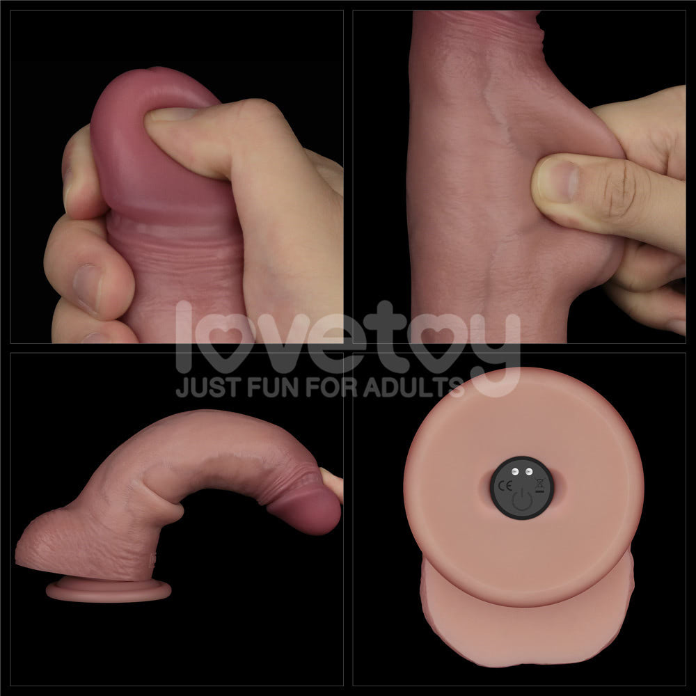 Pênis Dupla Densidade 4,5x21,5 cm com controle remoto e com 10 modos de vibração - 8.5" Vibrating Sliding Skin Pro II Silicone Dong - LOVETOY