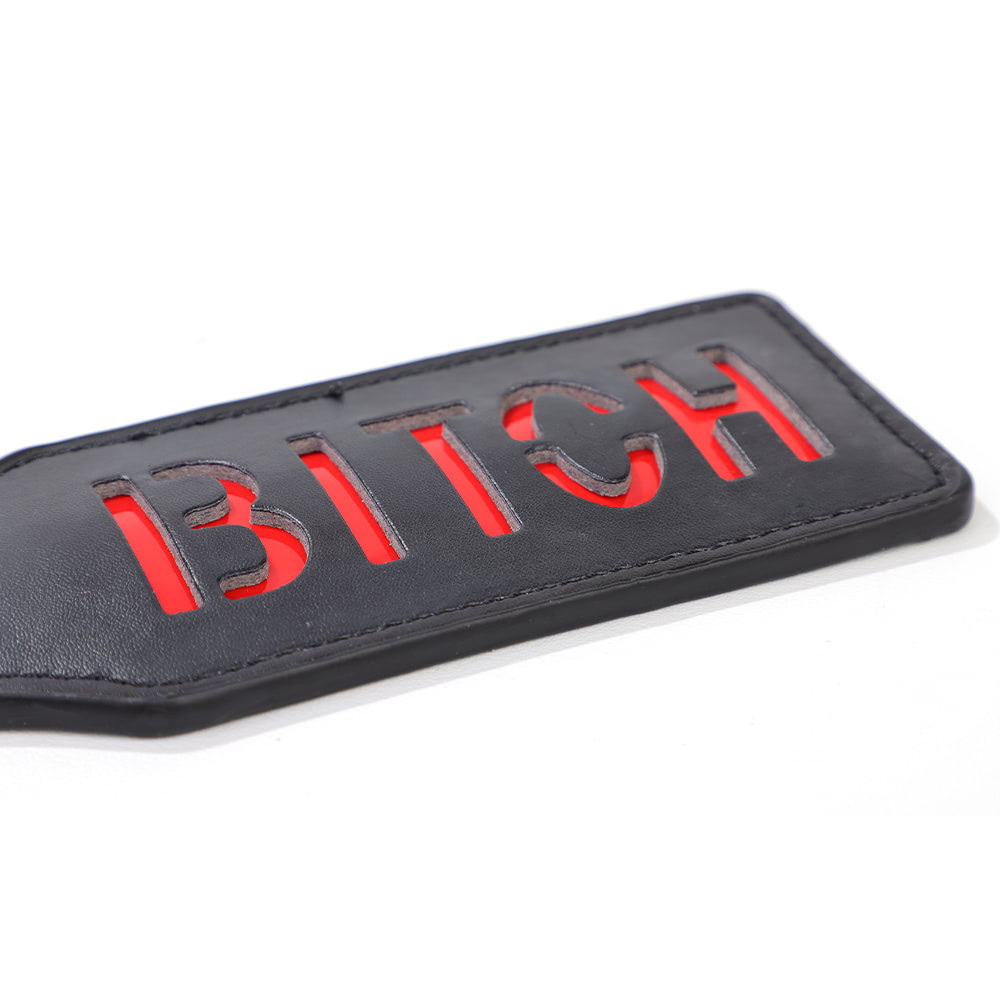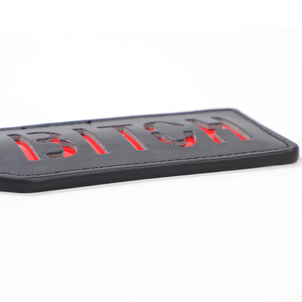 Palmatória em Couro Sintético BITCH Coleção Fetiche.A palmatória é confeccionada em couro sintético, ideal para quem deseja apimentar a relação e realizar a brincadeira de desobediência. A brincadeira começa na mão e caso a teimosia continue, o casal pode abusar a imaginação e escolher outros lugares para que a punição seja aplicada.Ela tem uma alça que pode ser colocada no pulso e tem a palavra "BITCH" escrita, que dependendo da intensidade que for a punição a palavra fica marcada na pele. Ideal para quem está começando ou já é adepto da arte BDSM, para que a diversão fique ainda mais animada.Medidas aproximadas:6,7x32 cm.Peso: 70 g.Material:PU .