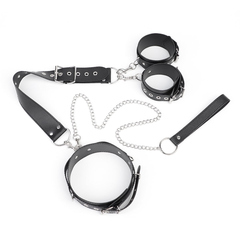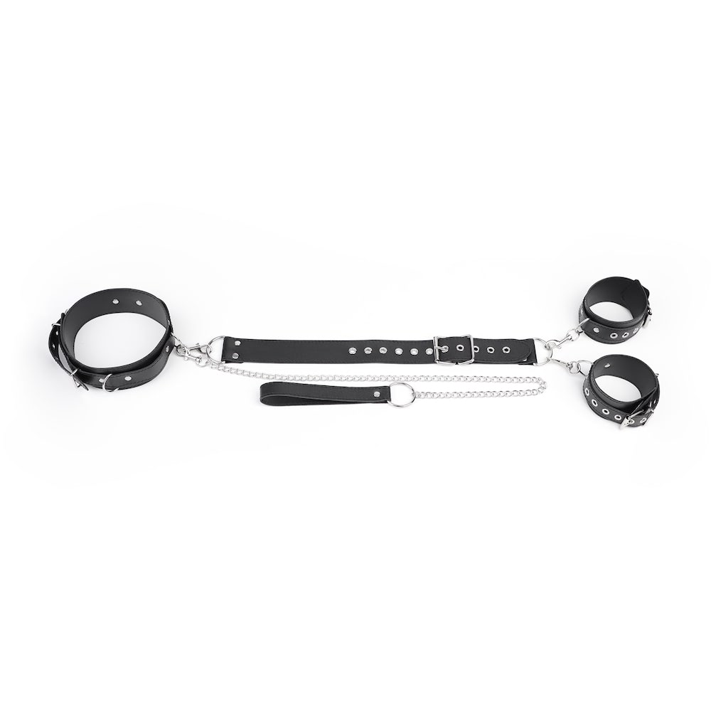 Kit Bondage - Kit de Restrições do Pescoço aos Pulsos com Corrente de Tração, Algemas Sexuais nas Costas, Coleira Ajustável - YOUVIBE