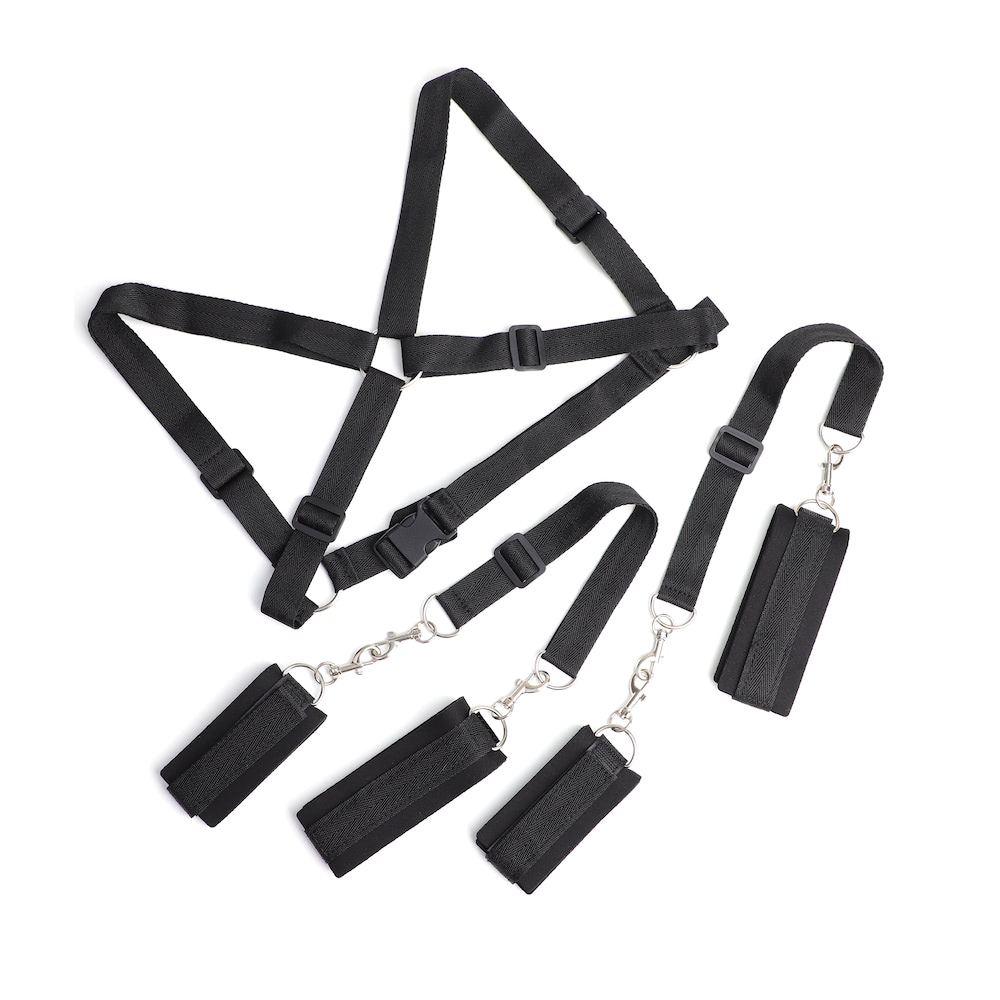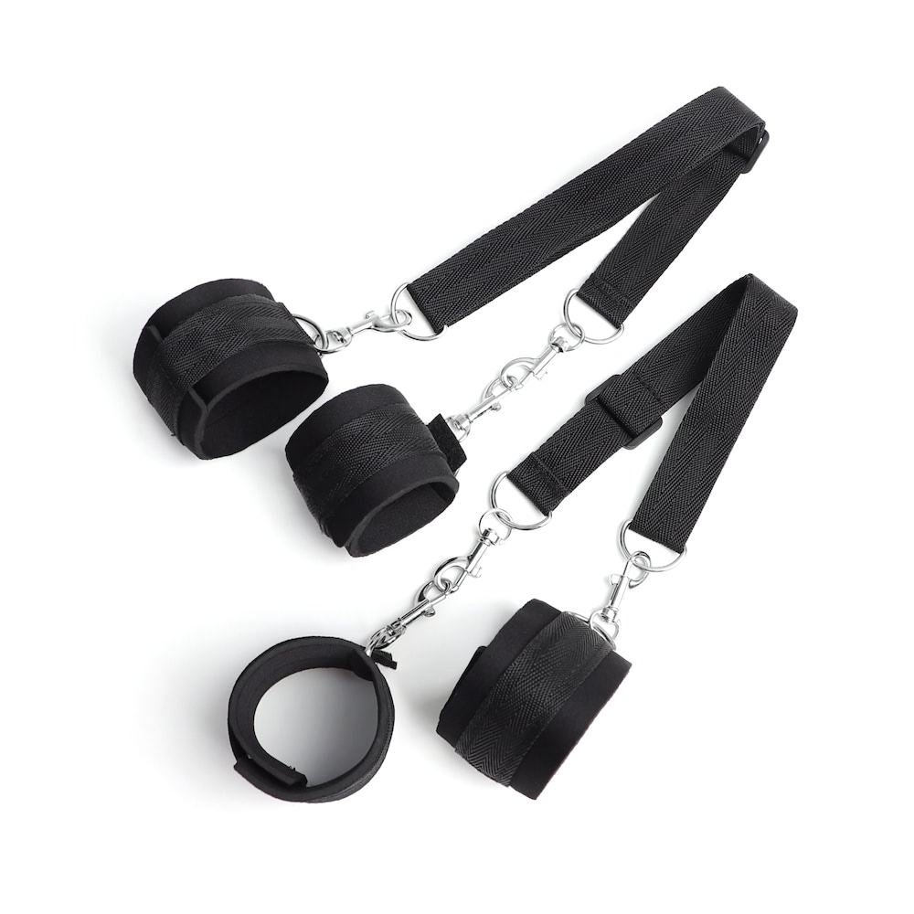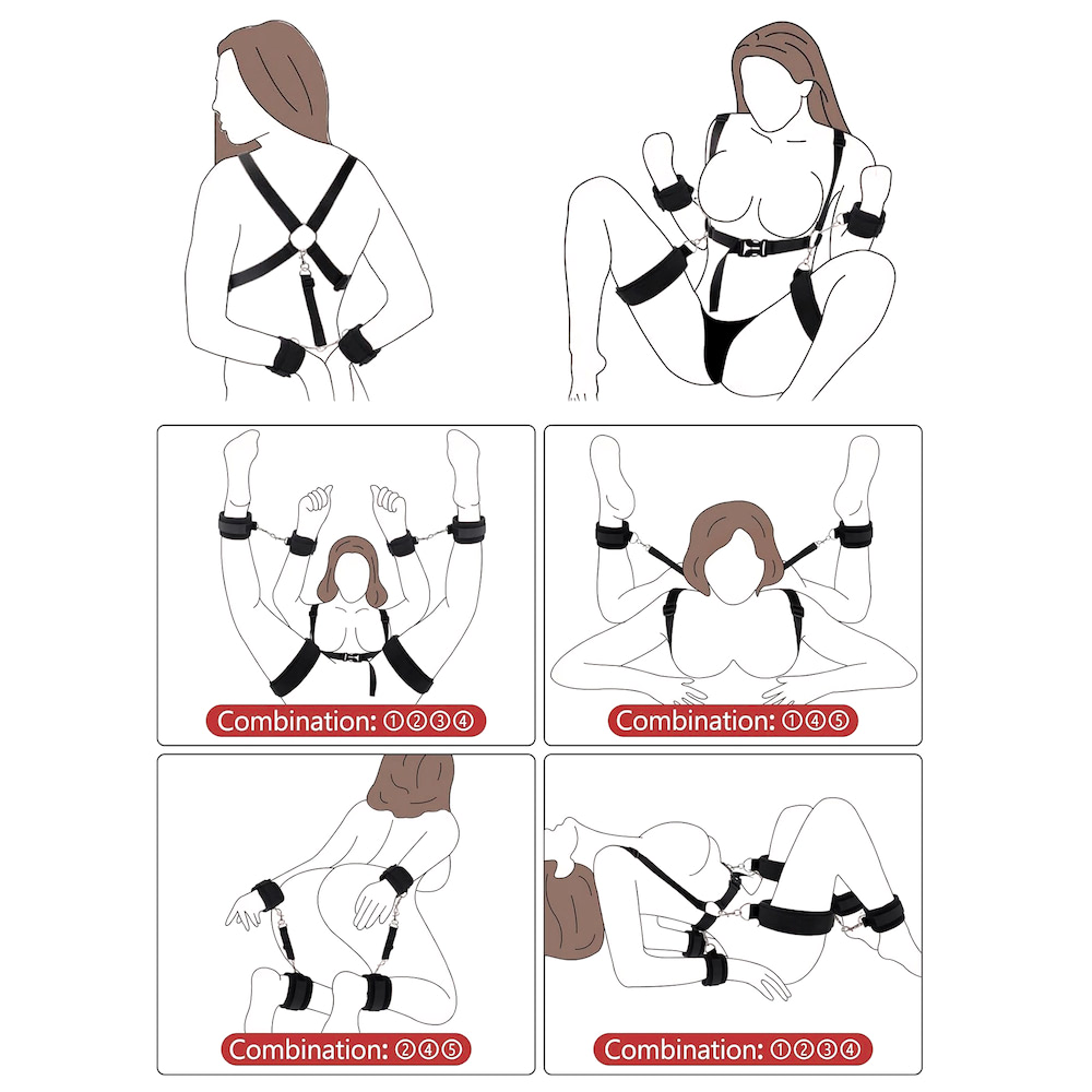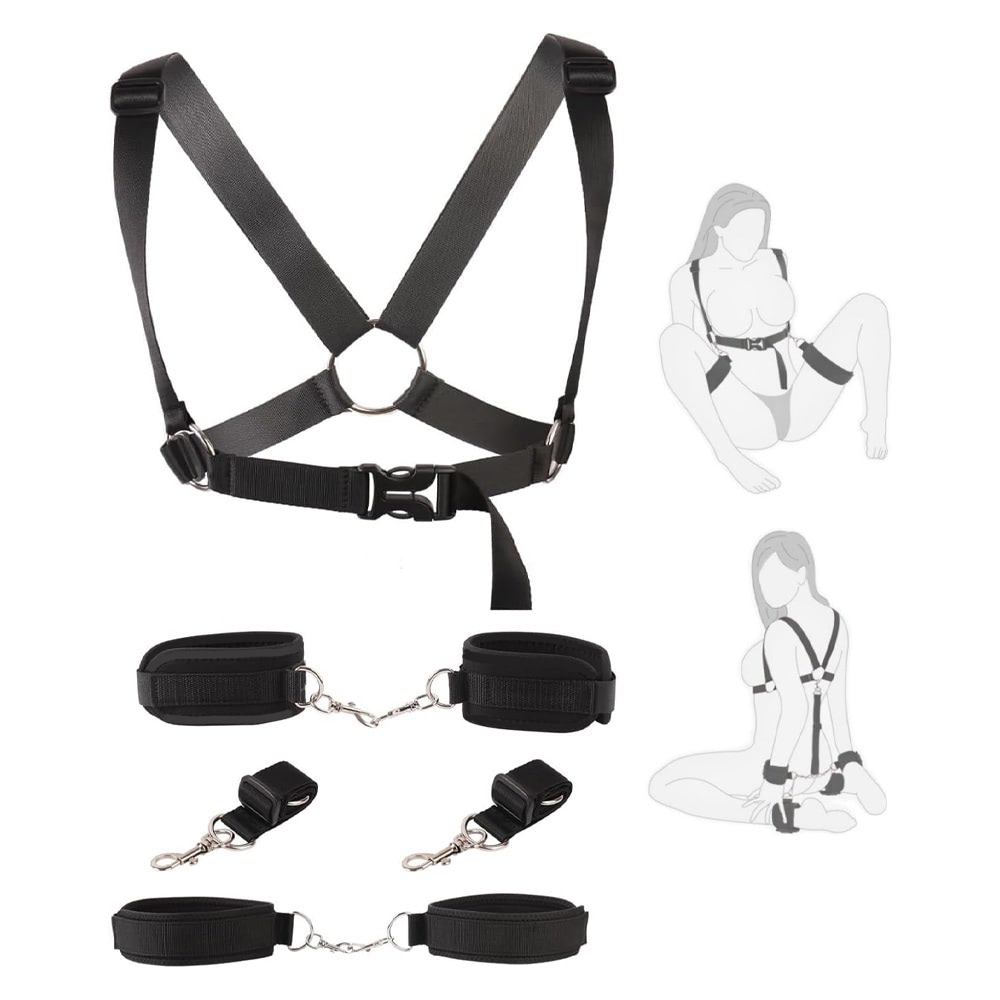 Kit Bondage - 4 em 1, Algemas de Pulso/Tornozelo com Algema de Coxa, Cinto de Peito, Alças Ajustáveis.Melhore sua experiência com nosso Kit BDSM, que inclui 1 restrição de peito, 2 algemas, 2 algemas de coxa, 2 algemas de tornozelo e 2 tiras ajustáveis. O conjunto completo de brinquedos sexuais BDSM pode ser usado em diversas combinações, como algemas de pulso a tornozelo, perna a tornozelo e pulso a coxa; as possibilidades são infinitas. Nosso arnês peitoral oferece suporte, elevação e formato excepcionais, realçando perfeitamente suas curvas e aumentando seu charme.Nosso conjunto de cordas de bondage é projetado com tiras de nylon fundidas a óleo ajustáveis, permitindo que você ajuste o aperto e o comprimento apropriados para torná-lo o ajuste perfeito para você e seu parceiro sem afrouxar. Atenda facilmente às suas necessidades, seja você iniciante em SM ou um usuário experiente.Medidas aproximadas:Algemas: 30 cm; Comprimento da alça traseira: 80 cm; Circunferência da cintura: 127 cm.Peso:250 g.Material:PVC+Metal.