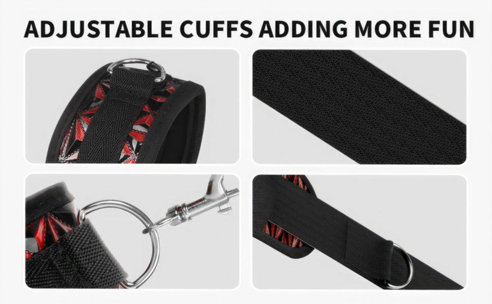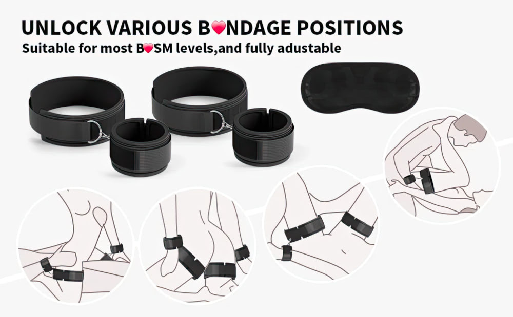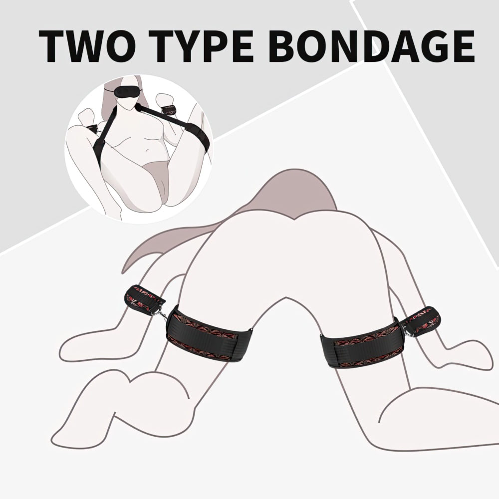 Kit Bondage com Algemas, Pulsos e Coxas, Brinquedos Sexuais para Cama com Algemas Ajustáveis, Tornozelos e Vendas - YOUVIBE
