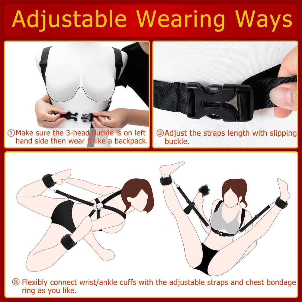 Kit de Bondage com 7 Peças para Brinquedos Sexuais.Restrições de Peito Ajustáveis, Algemas, Tornozelos, Algemas Sexuais, Equipamentos e Acessórios para Bondage, Brinquedos Sexuais Adultos para Casais, Homens e Mulheres.Conjunto de Bondage BDSM com 7 Peças: Inclui uma restrição de peito, algemas, tornozeleira, tiras curtas e um estimulador de penas. Possui costura precisa, forro respirável, tiras suaves e tamanho ajustável para todos os usuários.Projetada com alças ajustáveis sob o busto, ombros e costas para se adaptar à maioria dos tamanhos.Medidas aproximadas: Algemas: 30 cm; Raquete de penas: 35 cm; Comprimento da alça traseira: 80 cm; Circunferência da cintura: 127 cm.Peso:320 g.Material:Poliéster+Metal.