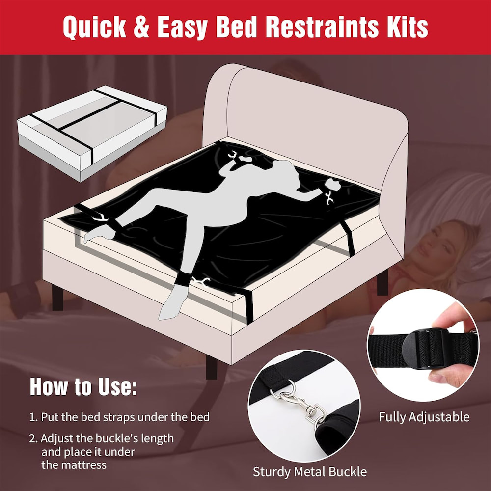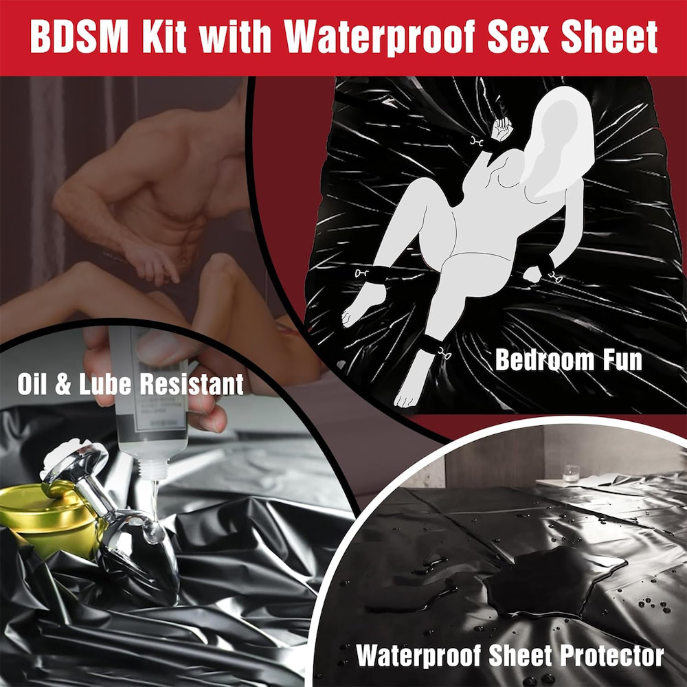 Kit de Bondage para cama - Lençóis de Bondage, Restrições à Prova D'água, Lençol de Brincar à Prova de Bagunça com Alças de Cama, Mordaça de Bola, Chicote BDSM - YOUVIBE