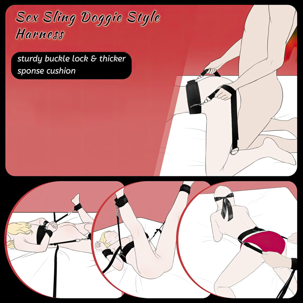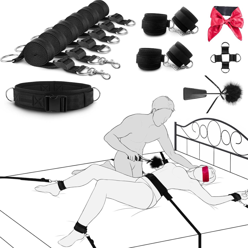 Kit de Bondage para cama - Sling,Algemas,Algemas Cruzadas,Venda,Cócegas,Penas.Esta contenção de cama BDSM possui 6 alças separadas para um conjunto de contenção rápido e fácil, 2 algemas, 2 algemas para tornozelos, uma alça cruzada, um arnês tipo tipoia, um cócegas, um provocador de penas e uma venda. As alças e algemas ajustáveis se ajustam com conforto e segurança, seja você iniciante ou mais experiente, e essas contenções oferecem ótima experiência e controle. Os materiais utilizados são resistentes, duráveis e confortáveis, garantindo que ele possa suportar até os encontros mais apaixonados.Medidas aproximadas:Cinto de contenção: 180 cm; Algemas: 28 cm; Venda: 8 * 147 cm; Pena: 35 cm; Cinto: 120 cm.Peso:600 g.Material:Poliéster+Metal.