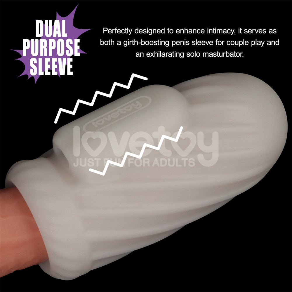 Masturbador com vibratória de dupla finalidade - Knights Ring Vibrating Dual Purpose Sleeve-Spiral.Descubra o máximo prazer e versatilidade com a Lovetoy Duo Vibrating Sleeve. Perfeitamente projetada para aumentar a intimidade, ela serve tanto como uma manga peniana que aumenta a circunferência para brincadeiras de casal quanto como um estimulante masturbador solo. Quer você busque maior conexão ou indulgência solo, esta manga de dupla finalidade proporciona uma experiência intensamente satisfatória todas as vezes.Feita de TPE de alta qualidade, durável e não tóxico, esta manga garante segurança e desempenho duradouro. Experimente uma melhoria significativa na intimidade, proporcionando ao seu parceiro uma experiência mais completa e satisfatória, graças a um aumento garantido de pelo menos 55% na circunferência.O interior é habilmente forrado com saliências elevadas, nós texturizados e sulcos estimulantes, proporcionando uma experiência que supera uma punheta real. Este canal texturizado cuidadosamente projetado maximiza a sensação, convidando à exploração sem esforço de novos níveis de prazer.Peso:194 g.Medidas aproximadas:13,5x3 cm.Material:TPE+ABS.Utiliza: 1 baterias CR2032 inclusas.