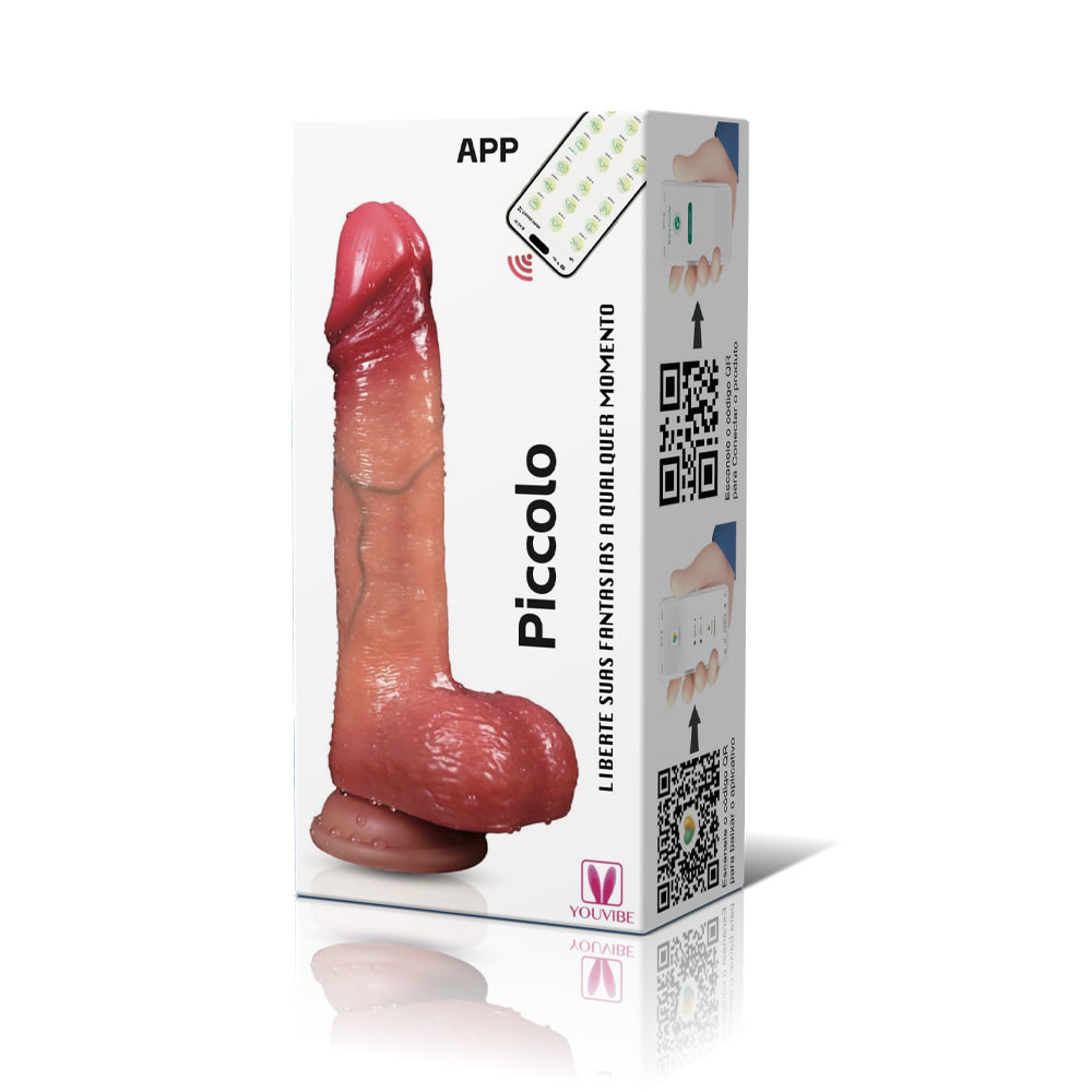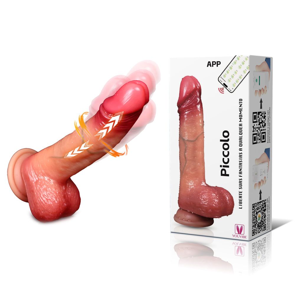 Pênis realista com ventosa e controle por aplicativo, possui 9 modos de movimentos vai e vem e 9 modos de vibração - Piccolo - YOUVIBE