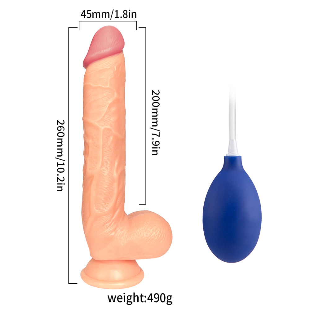 Pênis Ejaculador com Escroto 26x4,5cm.Desfrute de muita diversão com este pênis ejaculador!Um dildo ejaculador é um tipo de brinquedo sexual projetado para imitar a ejaculação masculina.Produzido em TPE, livre de Ftalatos, esse pênis incrivelmente realista tem um reservatório interno para armazenar líquidos, como lubrificante, por exemplo. Quando o usuário aperta sua bomba, o líquido é liberado pelo orifício na ponta do dildo, imitando a ejaculação.Pode ser usado por pessoas de todas as identidades de gênero e orientações sexuais para a estimulação e o prazer sexual.Conta com uma ventosa potente que você pode ser fixa a qualquer superfície lisa, deixando as mãos livres para outras fantasias sexuais.Peso:510 g.Medidas aproximadas:26x4,5 cm.Penetráveis:20 cm.Material:PVC+Silicone.