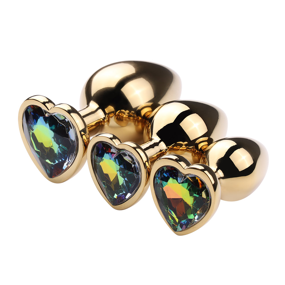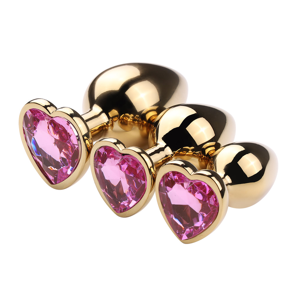DescriçãoPlug Anal de Coração em Aço - Dourado - Tamanho M. Plug Anal, este é um acessório erótico diferente que serve como estimulador anal em brincadeiras fetichistas,principalmente em jogos de dominação e submissão.É ideal para dilatação anal, pois sua espessura é diferente em todo seu comprimento. Medidas aproximadas:3,3x8,5 cm.Peso:90 g.Material:Aço.