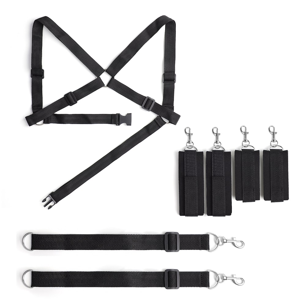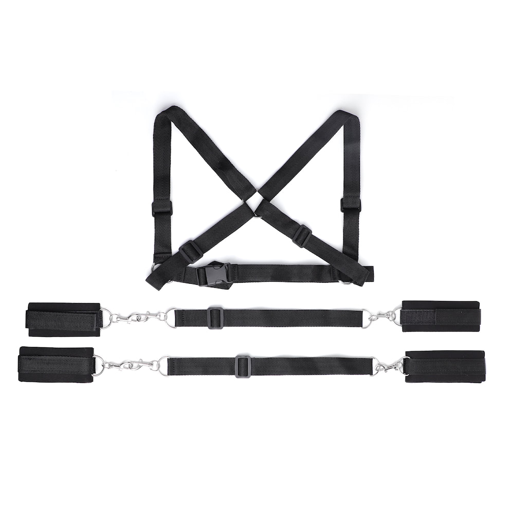 Kit Bondage - 4 em 1, Algemas de Pulso/Tornozelo com Algema de Coxa, Cinto de Peito, Alças Ajustáveis.Melhore sua experiência com nosso Kit BDSM, que inclui 1 restrição de peito, 2 algemas, 2 algemas de coxa, 2 algemas de tornozelo e 2 tiras ajustáveis. O conjunto completo de brinquedos sexuais BDSM pode ser usado em diversas combinações, como algemas de pulso a tornozelo, perna a tornozelo e pulso a coxa; as possibilidades são infinitas. Nosso arnês peitoral oferece suporte, elevação e formato excepcionais, realçando perfeitamente suas curvas e aumentando seu charme.Nosso conjunto de cordas de bondage é projetado com tiras de nylon fundidas a óleo ajustáveis, permitindo que você ajuste o aperto e o comprimento apropriados para torná-lo o ajuste perfeito para você e seu parceiro sem afrouxar. Atenda facilmente às suas necessidades, seja você iniciante em SM ou um usuário experiente.Medidas aproximadas:Algemas: 30 cm; Comprimento da alça traseira: 80 cm; Circunferência da cintura: 127 cm.Peso:250 g.Material:PVC+Metal.