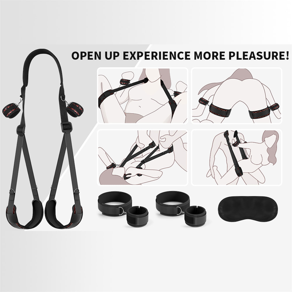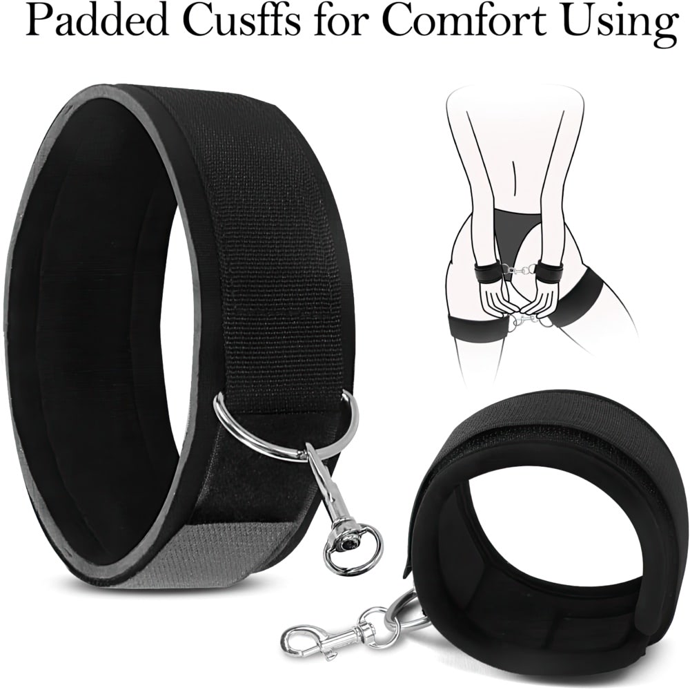 Kit Bondage com Algemas, Pulsos e Coxas, Brinquedos Sexuais para Cama com Algemas Ajustáveis, Tornozelos e Vendas - YOUVIBE