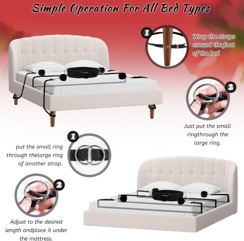 Kit de Bondage para cama - Sling,Algemas,Algemas Cruzadas,Venda,Cócegas,Penas.Esta contenção de cama BDSM possui 6 alças separadas para um conjunto de contenção rápido e fácil, 2 algemas, 2 algemas para tornozelos, uma alça cruzada, um arnês tipo tipoia, um cócegas, um provocador de penas e uma venda. As alças e algemas ajustáveis se ajustam com conforto e segurança, seja você iniciante ou mais experiente, e essas contenções oferecem ótima experiência e controle. Os materiais utilizados são resistentes, duráveis e confortáveis, garantindo que ele possa suportar até os encontros mais apaixonados.Medidas aproximadas:Cinto de contenção: 180 cm; Algemas: 28 cm; Venda: 8 * 147 cm; Pena: 35 cm; Cinto: 120 cm.Peso:600 g.Material:Poliéster+Metal.