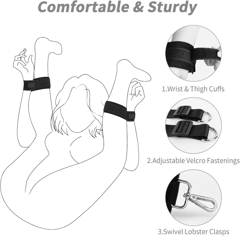 As alças e algemas ajustáveis são projetadas para suportar sessões intensas, garantindo segurança durante toda a sua prática. O conjunto é fácil de usar, confortável e oferece o equilíbrio perfeito entre contenção e liberdade para uma experiência BDSM emocionante e segura.Medidas aproximadas:Algemas: 30cm; Venda: 8*147cm; Pena: 35; Correia: 180cm.Peso:520 g.Material:Poliéster+Metal.