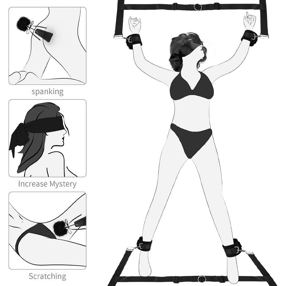 Kit de Bondage - Algemas Ajustáveis do Pescoço ao Pulso, Algemas Sexuais com Venda e Cócegas.Adequado não apenas para bondage na cama, mas também para arreios de perna. Projetado para casais que desejam explorar diferentes cenários de BDSM e RPG, este kit é perfeito tanto para iniciantes quanto para entusiastas experientes. Seja você um amante de bondage leve ou experiências SM mais intensas, este conjunto pode ser personalizado para atender às suas preferências, proporcionando uma variedade de aventuras íntimas.