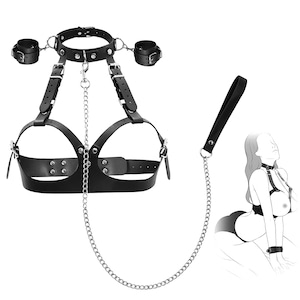 Kit Bondage - Seios BDSM Bondage para Sexo com Copos B a E, com Coleiras de Couro PU e com Corrente de Tração,Algemas - YOUVIBE