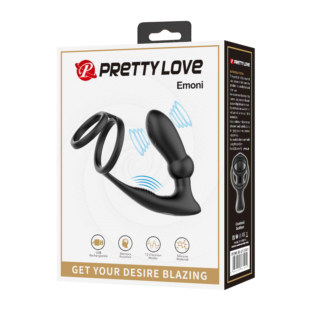 Anel Peniano com Plug Anal com 12 Modos de Vibração e 12 modos de de Tapa - Emoni.Esse anel peniano com plug anal 12 Modos de Vibração e 12 modos de de Tapa para que você consiga escolher a sua favorita e garantir seus orgarmos.Com anel peniano e para escroto, além de um delicioso estimulador de próstata, ele é ideal para atingir seu prazer e também satisfazer sua parceira.Ele também conta um plug anal que também vibra.Para que seu prazer chegue a níveis elevados e você consiga ter orgasmos múltiplos.Peso:98 g.Medidas aproximadas:10,2x15 cm.Diâmetro:3,8/4,2 cm.Material:Silicone+ABS.Produto recarregável,acompanha caba USB.