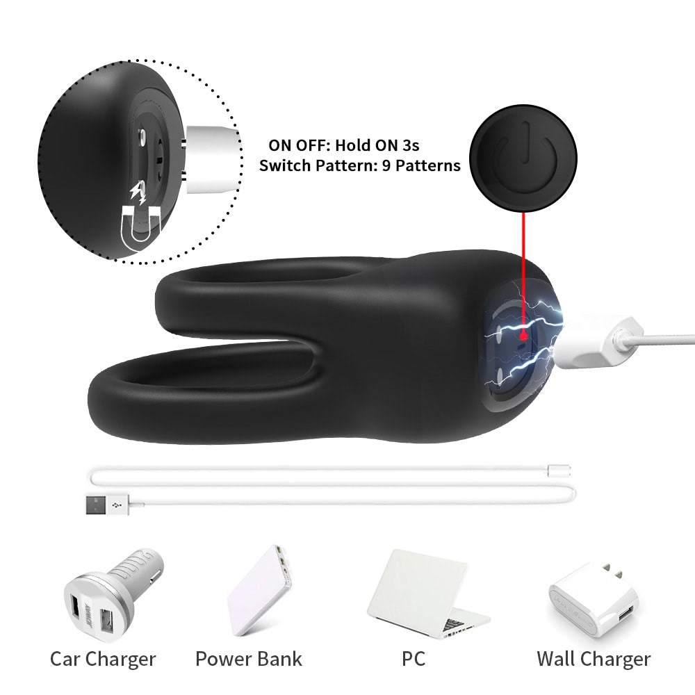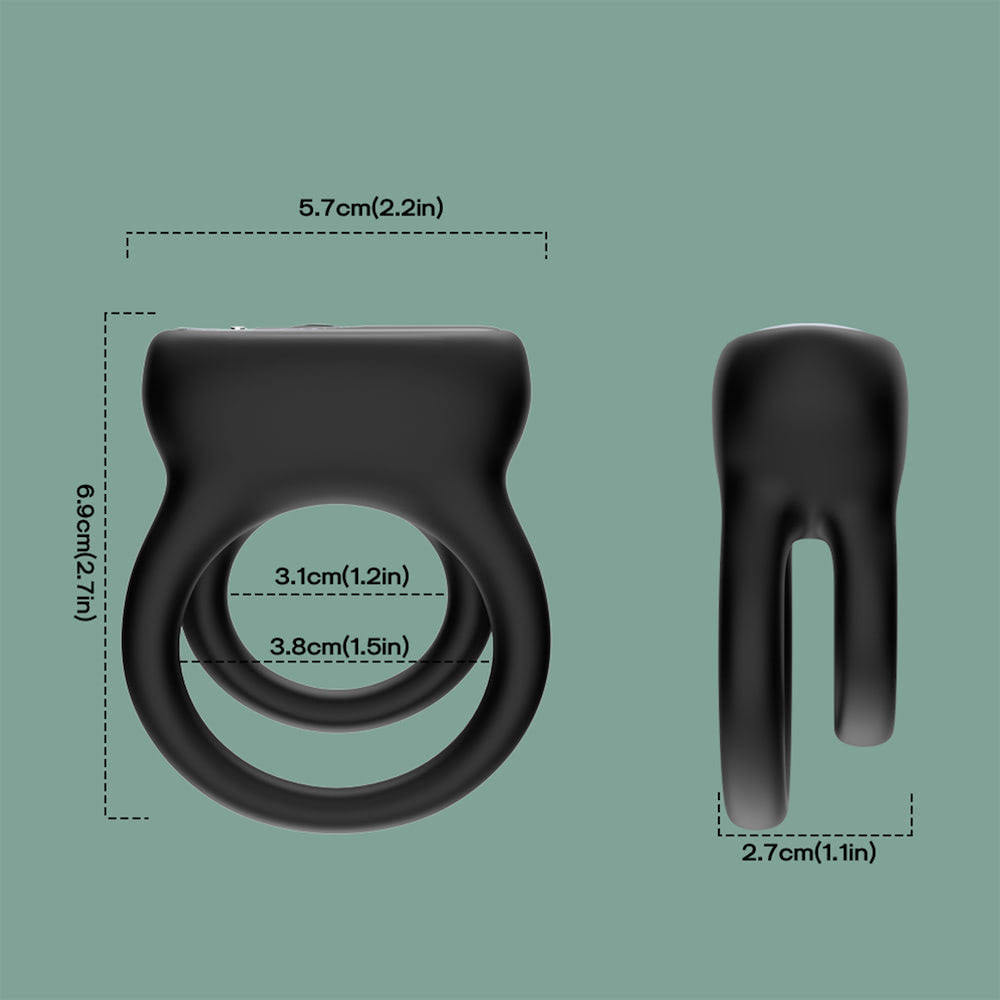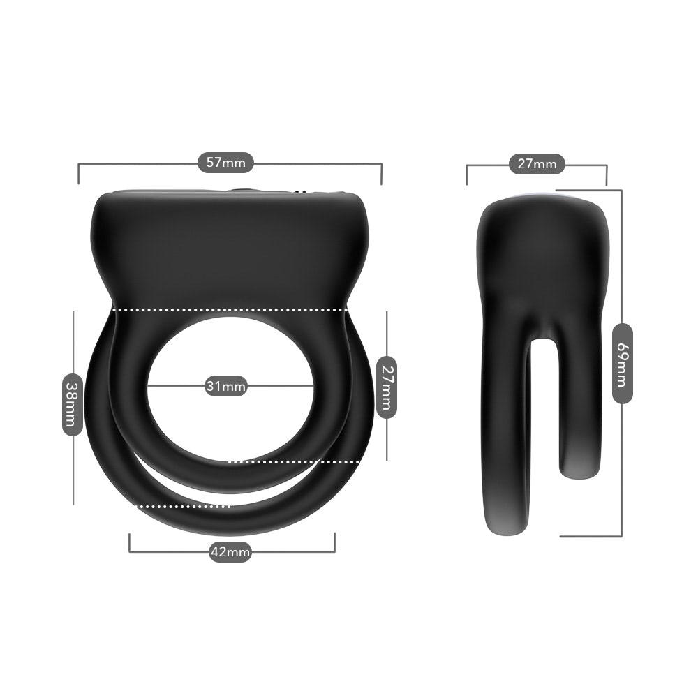 Anel Peniano Duplo com 9 Modos de Vibração.Este anel peniano não só prolonga a ereção e aumenta a resistência, mas também atua como um estimulador clitoriano.Com um poderoso vibrador de alto desempenho,possui 9 modos de vibração,este anel peniano proporciona estímulos fortes e intensos no clitóris da mulher enquanto seu parceiro a penetra, oferecendo prazer intenso e prolongado para ambos, melhorando a performance e facilitando orgasmos intensos.Apresenta uma cápsula vibratória removível, o que facilita sua higienização após o uso.Peso:41 g.Medidas aproximadas:5,2x5,7x2,8 cm.Material:Silicone+ABS.Produto recarregável, acompanha cabo USB.