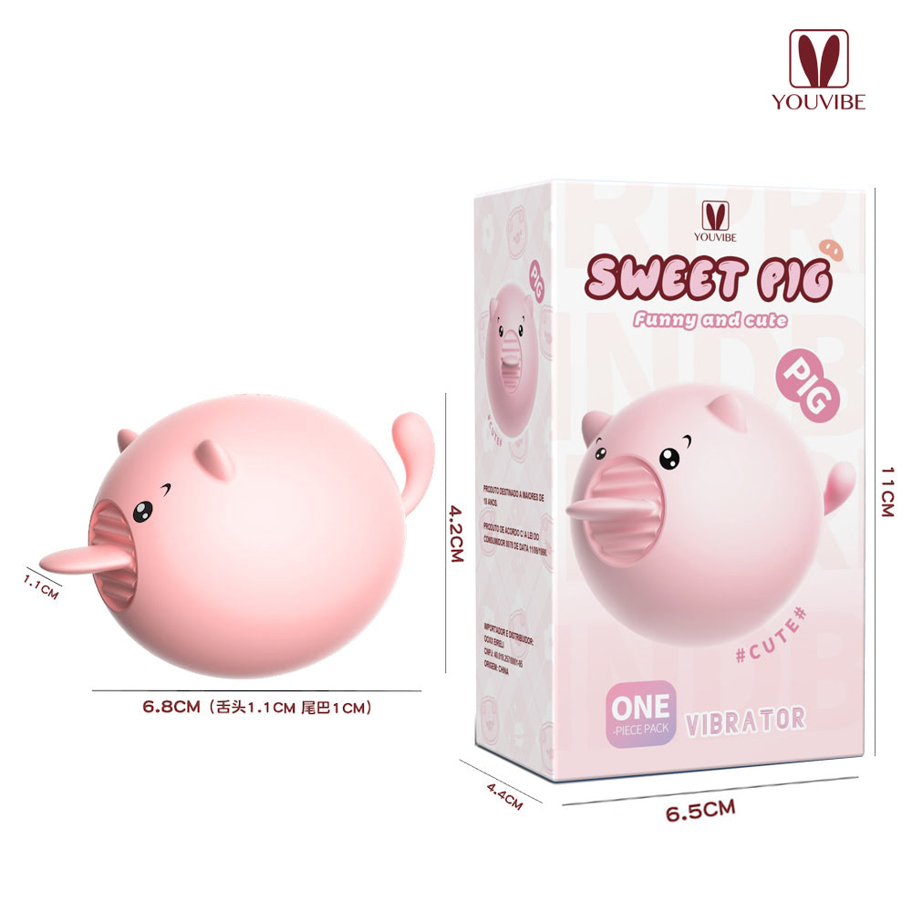 DescriçãoEstimulador Clitoriano em formato de porco - SWEET PIG - YOUVIBE. Sweet Pig com uma língua estimuladora produz movimentos de estimulação vai e vem,possui 10 modos de estimulação. Seu língua pequeno, desenvolvido estrategicamente para a região do clitóris.Medidas aproximadas:4,1x6,7 cm.Peso:38 g.Material:Silicone+ABS.Produto recarregável, acompanha cabo USB.Modo de Usar: Certifique-se que o produto esteja totalmente carregado. Ligue o botão power por 1,5 segundos e a estimulação da língua começará a funcionar.Para desligar, aperte o power novamente.Restrições de Uso: Evite áreas com inflamações, lesões ou inchaços.