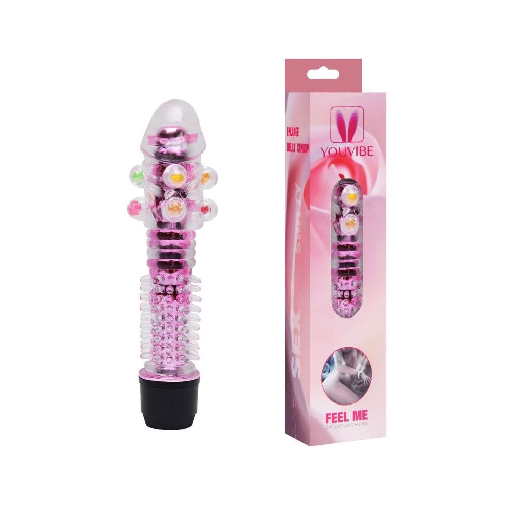 DescriçãoVibrador translúcido com capa texturizada e pérolas para maiores estímulos, feito em Jelly e vibração multivelocidade.Produto: 15x3,5x3,5 cm Diâmetro: 3,5 cm Penetráveis: 12,5 cm. Utiliza: 2 pilhas AAA não inclusas Material: Jelly e ABS.