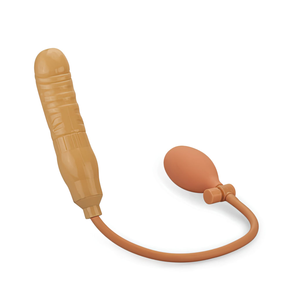 Pênis inflável em TPR com mangueira e válvula controladora de pressão.Produto: 17x3,5x3,5 cm Diâmetro: 3,5 cm sem inflar. Inflado: 4,2 cm Penetráveis: 15 cm Material: PVC.