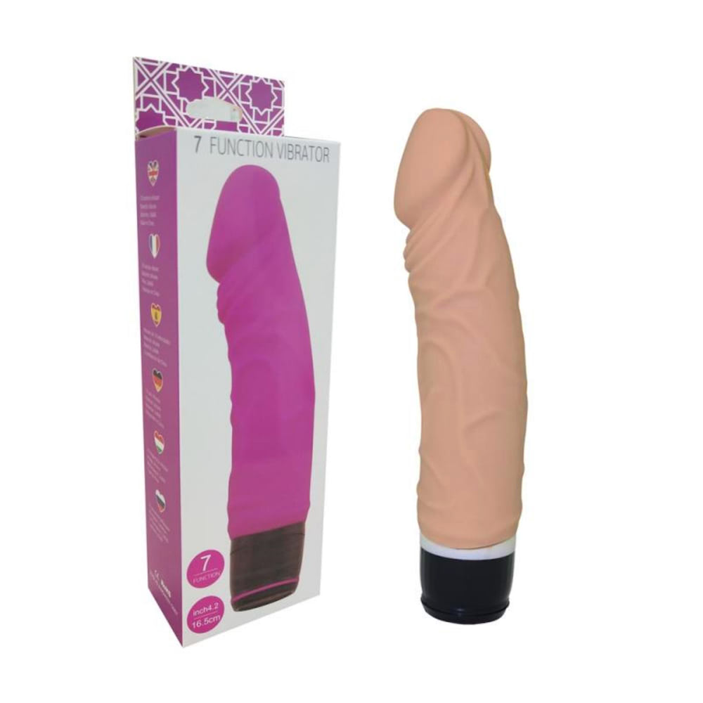 Pênis Realístico com 7 Modos de Vibração - 20,5x4,5 cm.Este vibrador realista com vibração proporciona um prazer excitante para ela! Parece um pênis de verdade, este brinquedo é longo e grosso, com um motor potente e uma cabeça realista. Apresenta design e funcionalidade simples e clássicos, com 7 modos de vibração, desde vibrações suaves até pulsações intensas, este dildo recarregável permite que você personalize sua experiência de acordo com suas preferências.Adicionando sensações incríveis durante a penetração e levando-a ao limite.Utiliza 2 pilhas AA não inclusas.Medidas aproximadas: 20,5x4,5 cm.Penetráveis:17 cm.Peso:154 g.Material:Silicone+ABS.