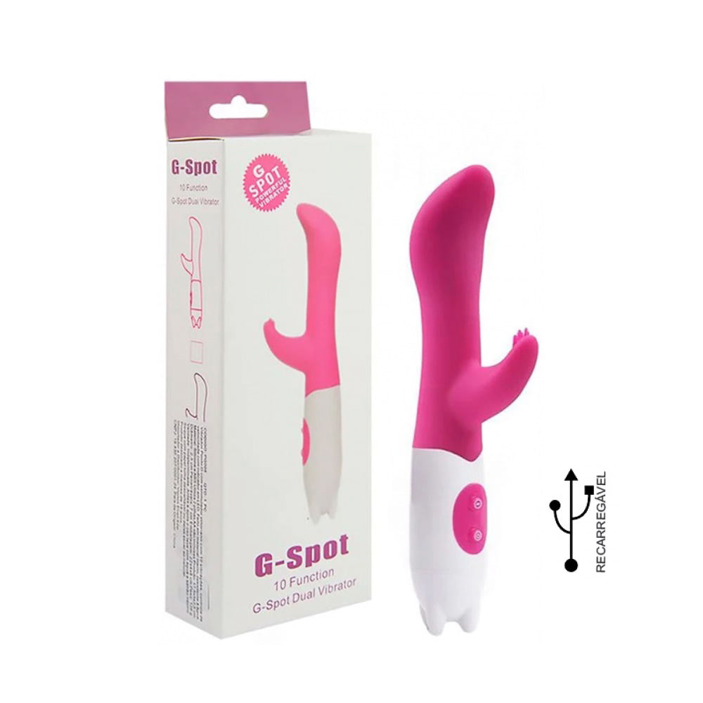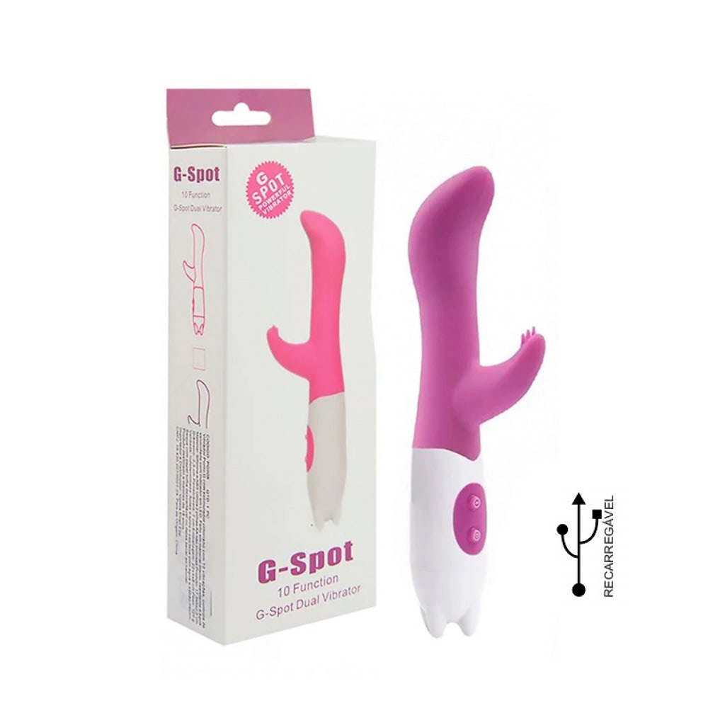 DescriçãoVibrador G-spot dual recarregável 10 velocidades, possui estimulador clitoriano, controle de velocidade com indicador em LED. Feito em material macio, resistente à água. Produto: 17,5x5x2,5 cm. Diâmetro: 2,5 cm Penetráveis: 7 cm Material: Silicone Embalagem: 22x4x8 cm Incluso: Carregador USB.