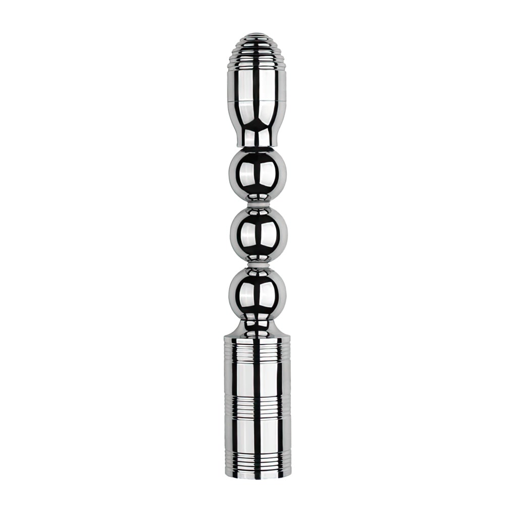 Plug Anal de Aço com bolas e 10 modos de vibração.Plug Anal este é um acessório erótico diferente que serve como estimulador anal em brincadeiras fetichistas, principalmente em jogos de dominação e submissão.É ideal para dilatação anal, pois sua espessura é diferente em todo seu comprimento.Recarregável via USB/Tomada.Medidas aproximadas:3,4x30 cm.Peso:332 g.Utiliza: Cabo USB incluso.Material: Aluminio.