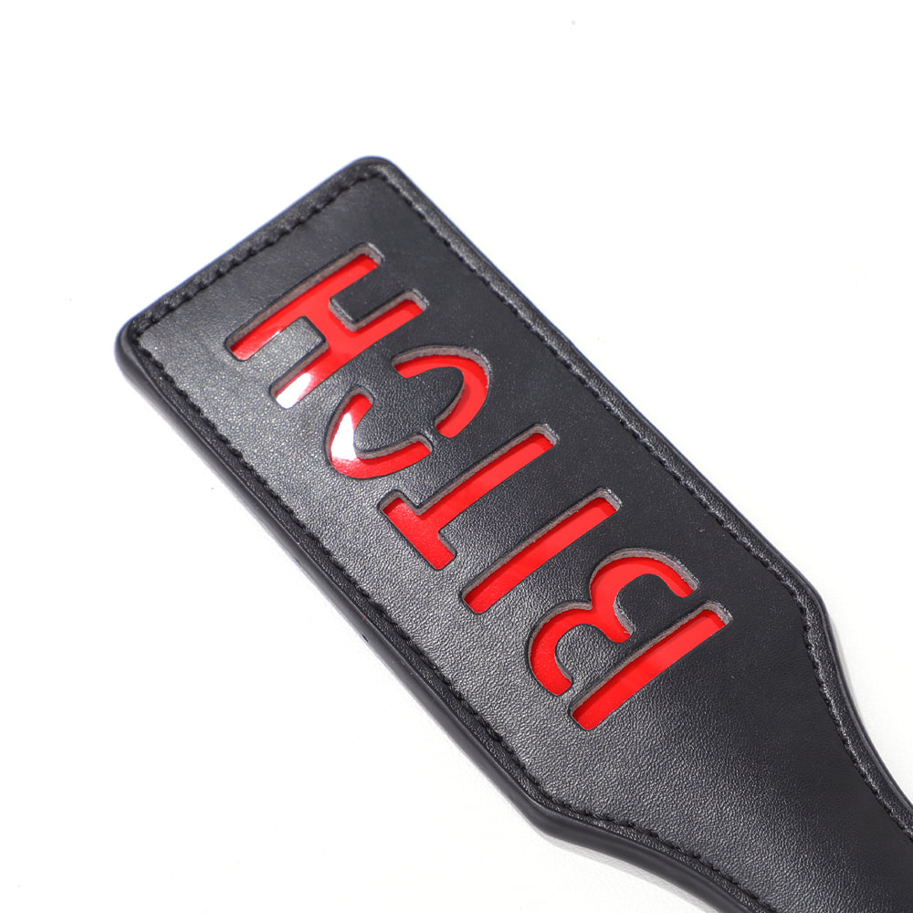 Palmatória em Couro Sintético BITCH Coleção Fetiche.A palmatória é confeccionada em couro sintético, ideal para quem deseja apimentar a relação e realizar a brincadeira de desobediência. A brincadeira começa na mão e caso a teimosia continue, o casal pode abusar a imaginação e escolher outros lugares para que a punição seja aplicada.Ela tem uma alça que pode ser colocada no pulso e tem a palavra "BITCH" escrita, que dependendo da intensidade que for a punição a palavra fica marcada na pele. Ideal para quem está começando ou já é adepto da arte BDSM, para que a diversão fique ainda mais animada.Medidas aproximadas:6,7x32 cm.Peso: 70 g.Material:PU .