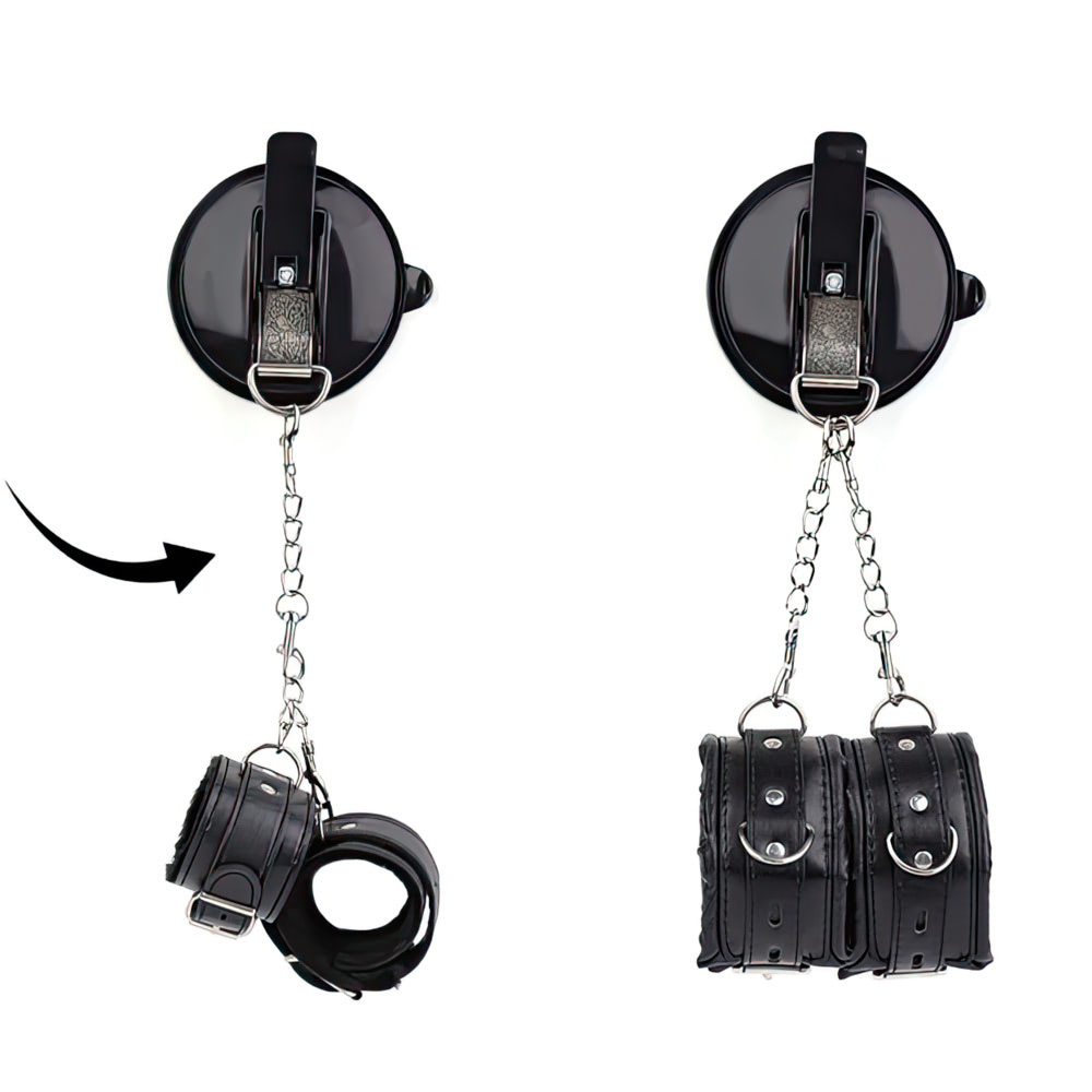 Algemas com Ventosa de Fixação.Domine a arte da sedução com as Algemas com Ventosa, um acessório inovador que combina funcionalidade prática e estética ousada. Projetadas para quem busca explorar brincadeiras sensuais com segurança e estilo, estas algemas destacam-se pela tecnologia de ventosa de alta aderência e design premium inspirado no universo BDSM.Medidas aproximadas:5,8x33 cm(Algema).Peso:170 g.Material:PVC+Poliéster+ABS+Metal+Silicone .