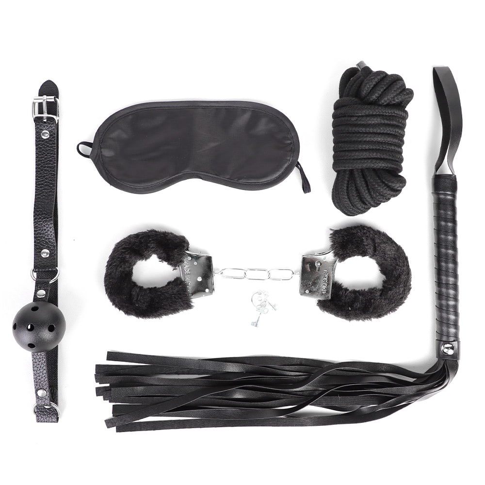 Kit Sado Bandage com 5 Produtos.Este kit sado é composto por 5 produtos essenciais, incluindo venda, chicote, algema,mordaça,corda.Cada peça é projetada para explorar o mundo de mistério, fetiche, dor e prazer do bondage e do sadomasoquismo, oferecendo uma experiência completa e versátil. Ideal para casais que exploram fantasia BDSM, cada peça foi projetada com materiais premium e detalhes irresistíveis para experiências sensuais inesquecíveis.Medidas aproximadasvenda(19x8,5 cm), chicote(50 cm), algema(6x35),mordaça(Circunferência ajustável: 41-55 cm; Diâmetro da bola: 4,5 cm),corda(0.8x500 cm).Peso: 220 g.Material:PVC+Algodão+Poliéster+ABS+Metal.