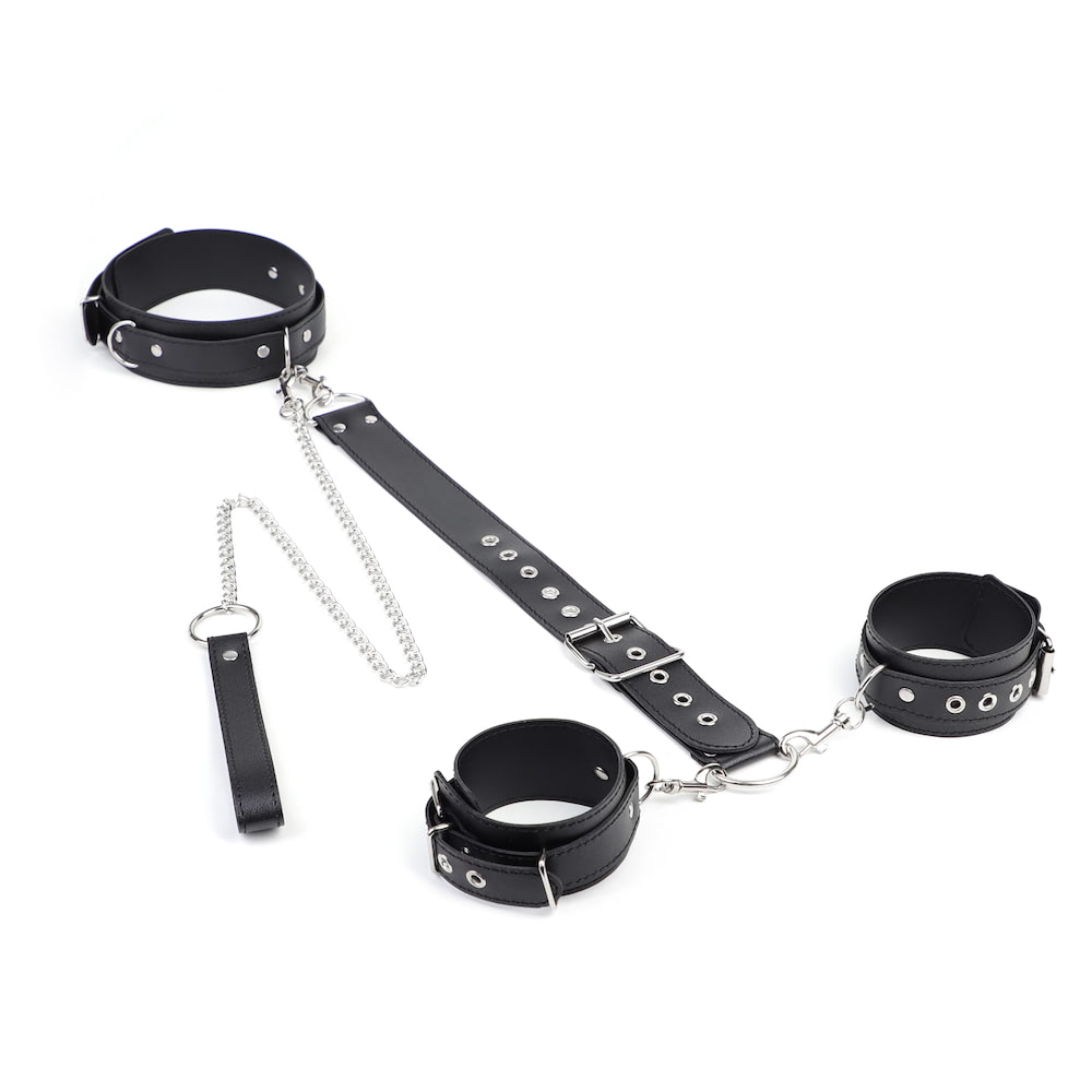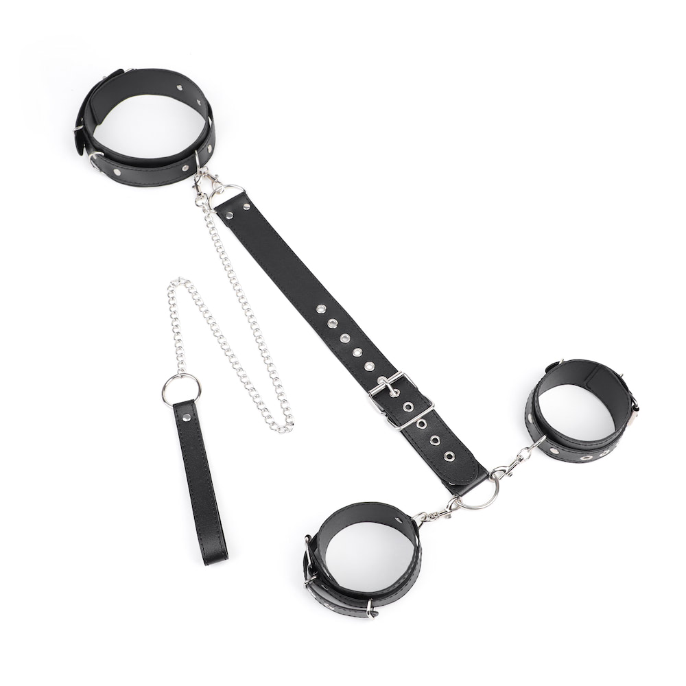Kit Bondage - Kit de Restrições do Pescoço aos Pulsos com Corrente de Tração, Algemas Sexuais nas Costas, Coleira Ajustável - YOUVIBE