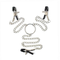 Grampos para os seios em metal com presilhas ajustáveis para diversificar a pressão, possui correnteque interliga os dois grampos - VIPMIX