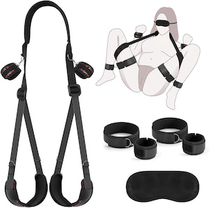 Kit Bondage com Algemas, Pulsos e Coxas, Brinquedos Sexuais para Cama com Algemas Ajustáveis, Tornozelos e Vendas - YOUVIBE